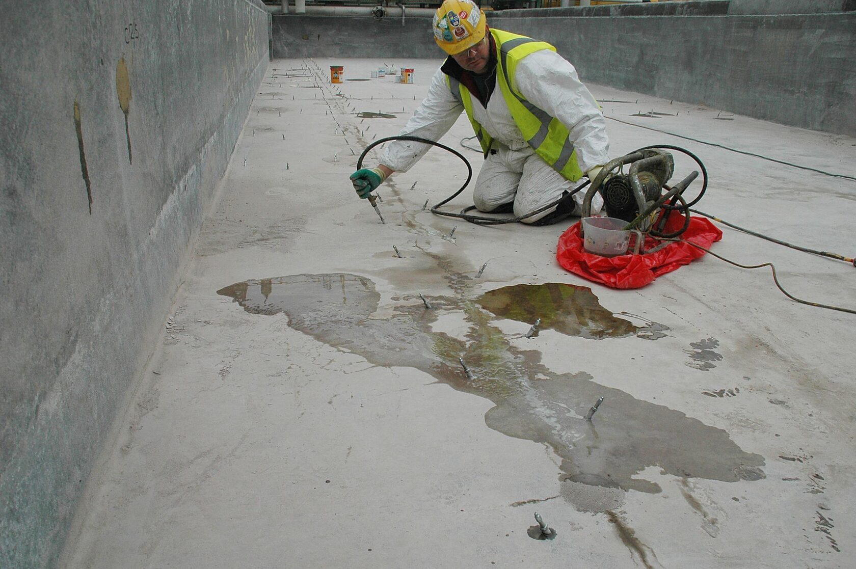 Инъекционная гидроизоляция включает в себя введение специальных составов в трещины и поры бетона с помощью пакеров и специальных насосов.